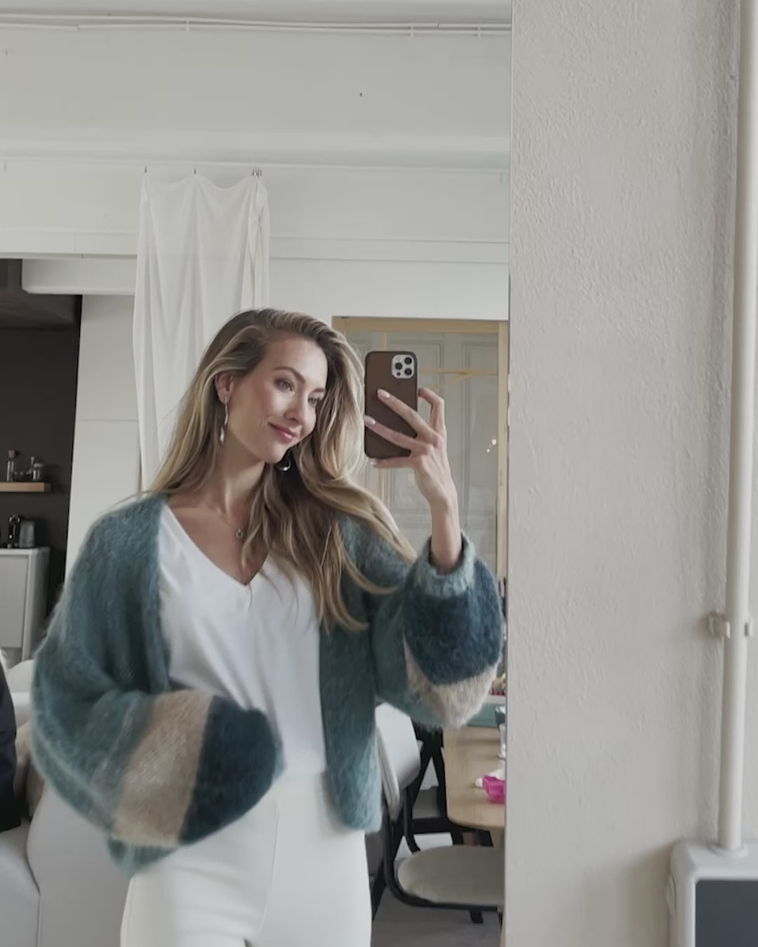 *Sieht deine Strickjacke im echten Leben weniger flauschig aus als auf den Fotos? Kein Grund zur Sorge! Das liegt daran, dass wir alles so kompakt wie möglich verpacken, denn "Luft" zu transportieren ist alles andere als umweltbewusst. Schüttle die Strickjacke leicht aus, hänge sie eine Stunde lang an der frischen Luft oder in einem feuchten Badezimmer auf und voilà: Sie ist so flauschig wie ein neugeborenes Kätzchen.