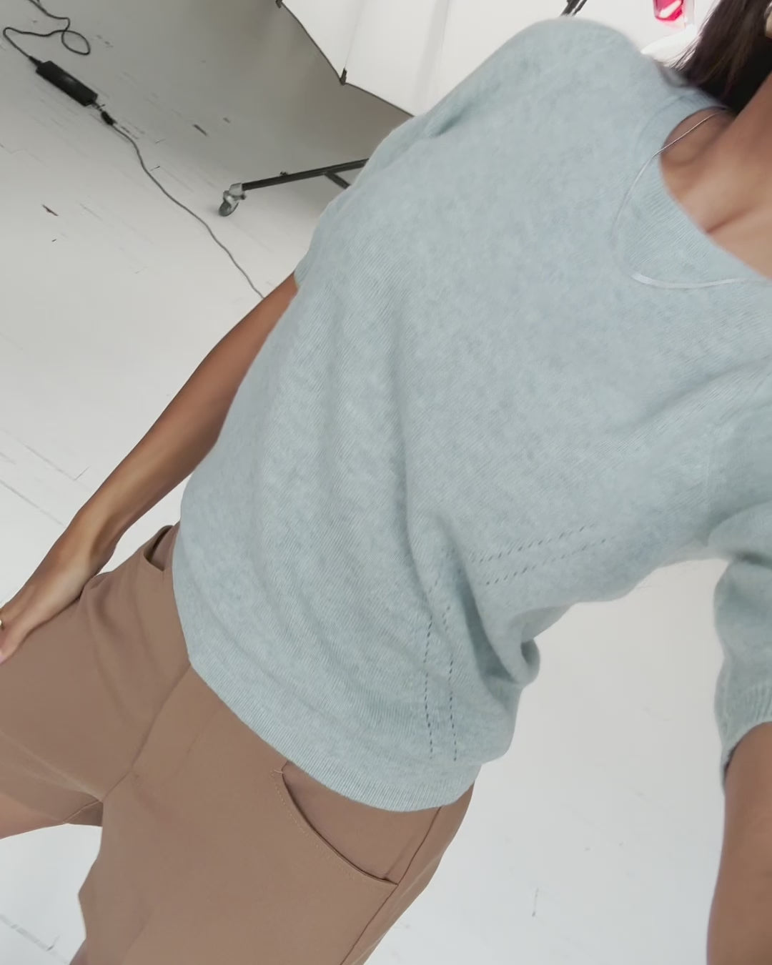 Größenberatung// Der Kurzarmpullover fällt normal aus.