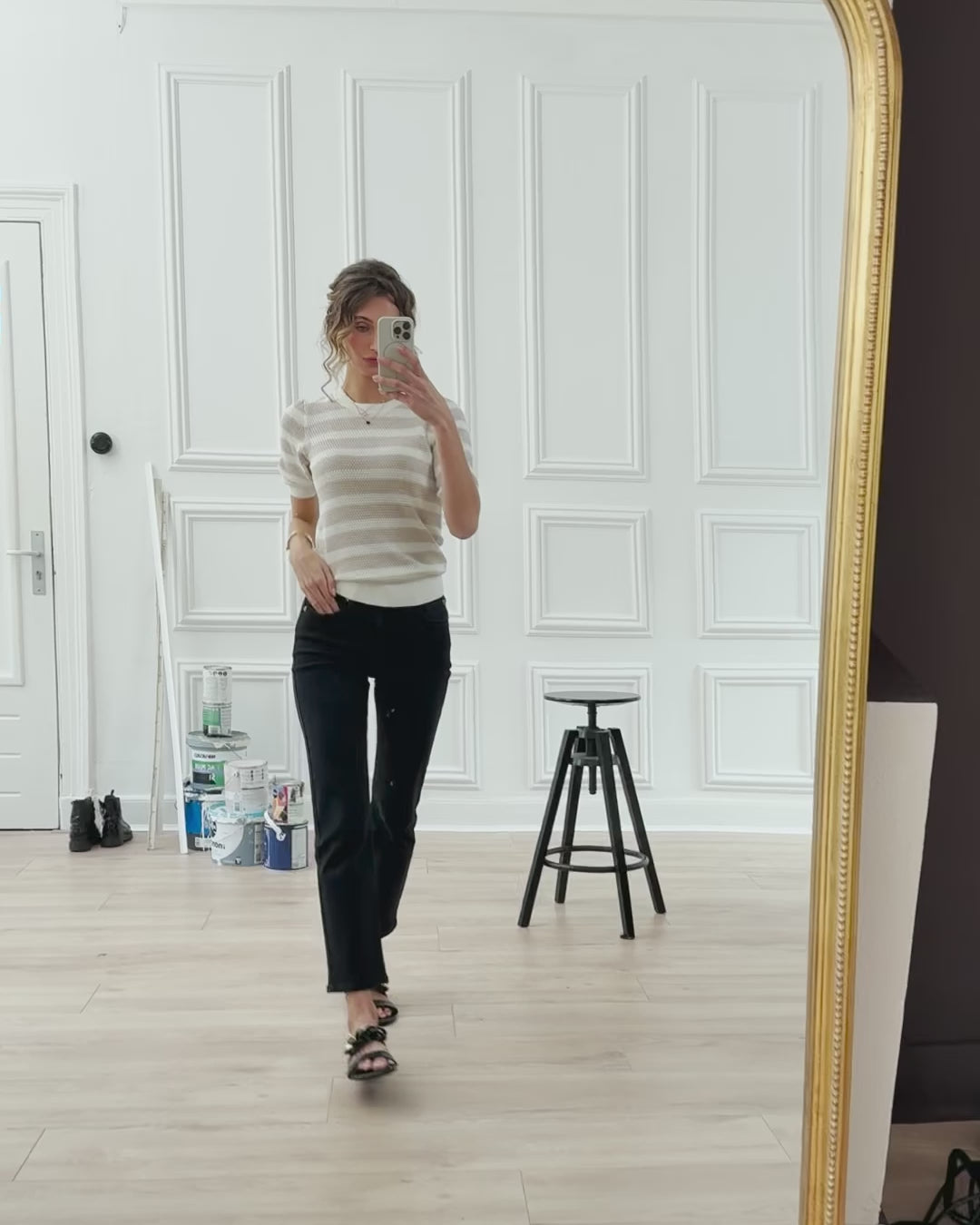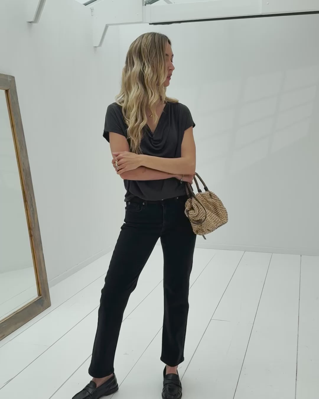 Introducing: our newest denim darling LE GUY. The same great fit, denim quality and wash as bestseller LES FLARES, but with straight slim legs and a 7/8 leg length (meant to leave your ankles free, but just as practical if you're shorter in stature). The cotton blend stretch denim contains a touch of polyester so it keeps its shape nicely.