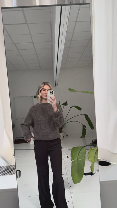 The wow factor as well as the cuddliness factor: sweater LA DOUCE is no slouch. Don't be fooled by its sumptuous wooliness: the mohair yarn is super light and super loose-knit - it never gets too hot, even if you're such a hothead ; ) The combination of 'supple fall + semi-oversized fit' turns out to be surprisingly feminine, just like you've come to expect from us. You're welcome
