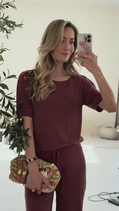 Introducing our new superstar: LA PHILEINE. Made from a modal blend rib jersey with a beautiful washed finish and smooth fit. Fans of our feminine T-shirts will recognize the style: it's the same design as LA PHILA. This includes the elegant pleated sleeves, but this time we made the top a bit more stretchy and added more natural modal. Get yours before we run out of stock!