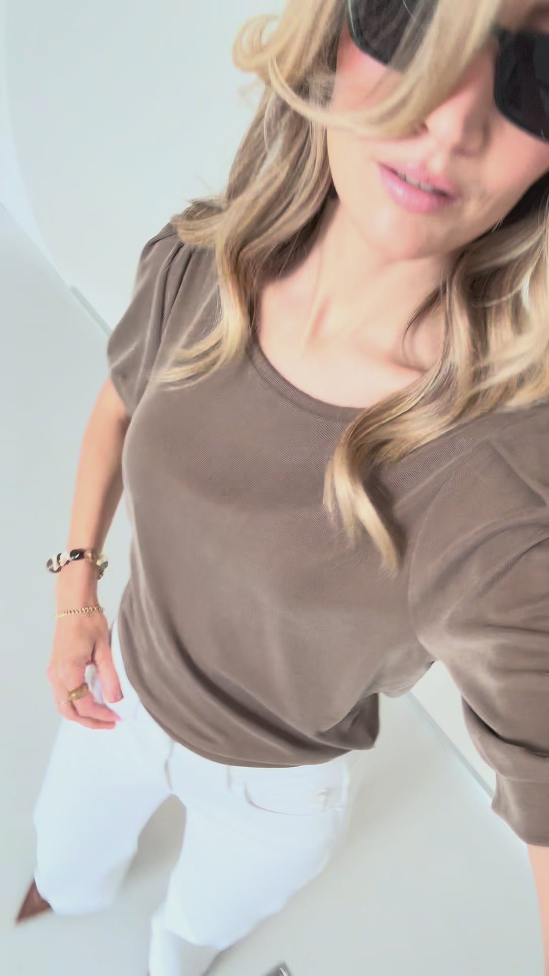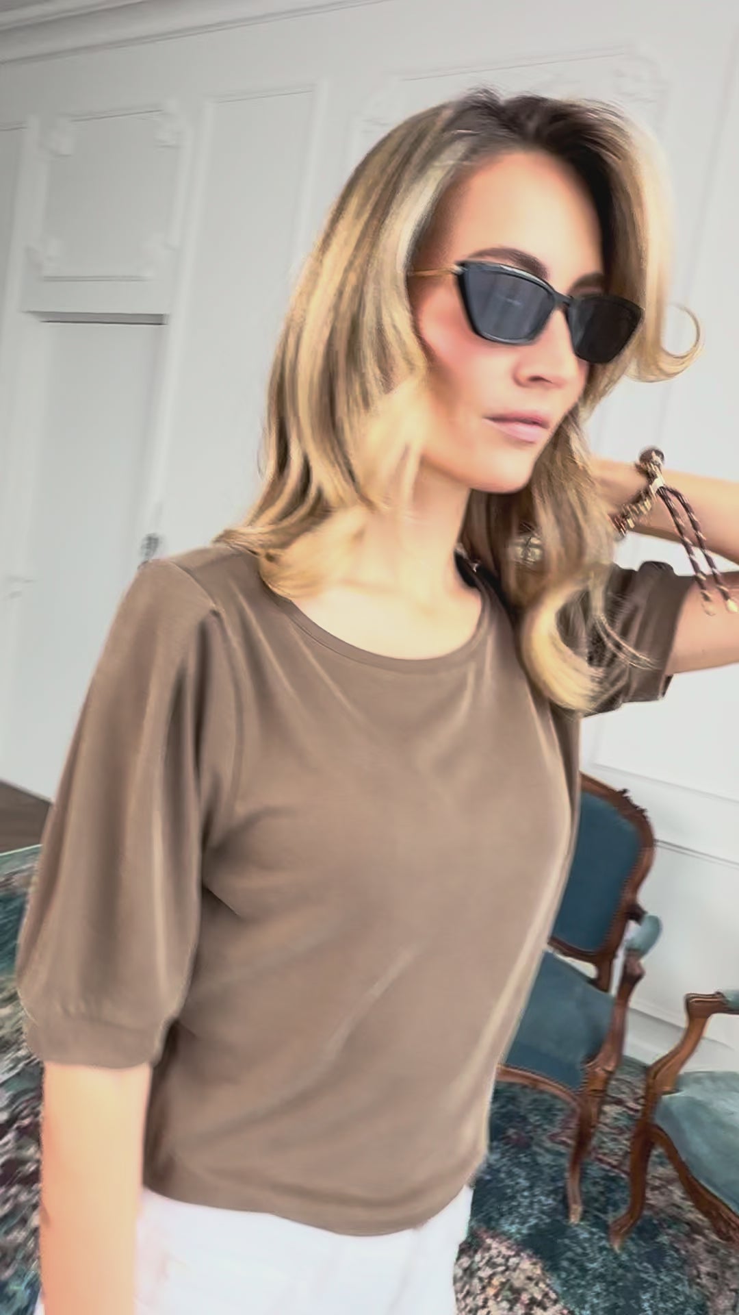 Introducing our new superstar: LA PHILEINE. Made from a modal blend rib jersey with a beautiful washed finish and smooth fit. Fans of our feminine T-shirts will recognize the style: it's the same design as LA PHILA. This includes the elegant pleated sleeves, but this time we made the top a bit more stretchy and added more natural modal. Get yours before we run out of stock!