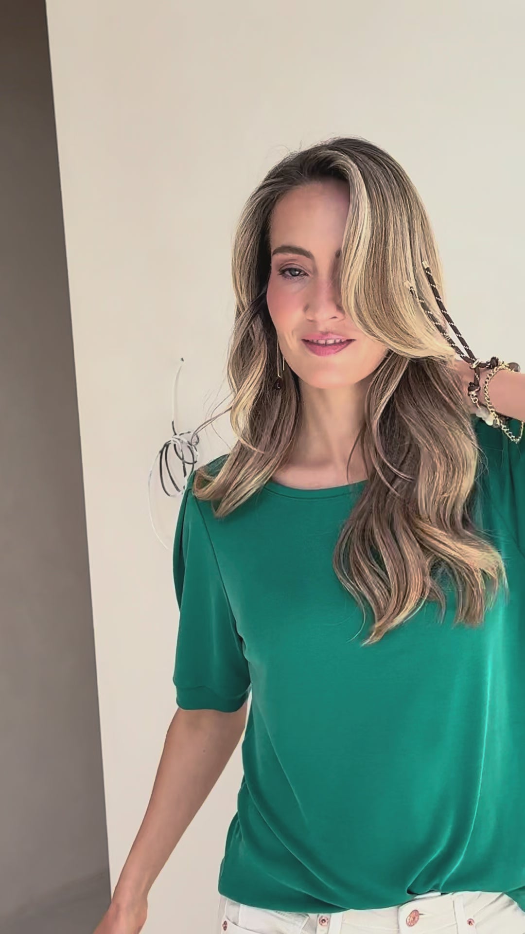 Introducing our new superstar: LA PHILEINE. Made from a modal blend rib jersey with a beautiful washed finish and smooth fit. Fans of our feminine T-shirts will recognize the style: it's the same design as LA PHILA. This includes the elegant pleated sleeves, but this time we made the top a bit more stretchy and added more natural modal. Get yours before we run out of stock!