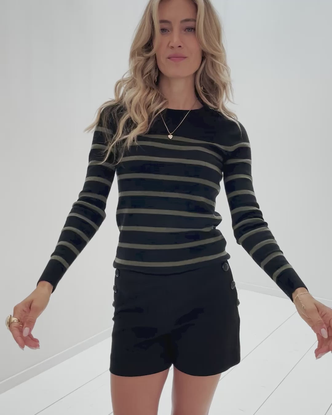 Whoopee...a pair of shorts! And what a one. Stylish and comfortable. In fact, we made these shorts from a sturdy bi-stretch jersey quality. The bi-stretch viscose-blend stretches in two directions for super comfort, the slightly firmer fabric is pleasantly forgiving, and in the straight legs make your legs look slimmer. The stylish buttons - with crown, yaha - give this design a timeless maritime touch.