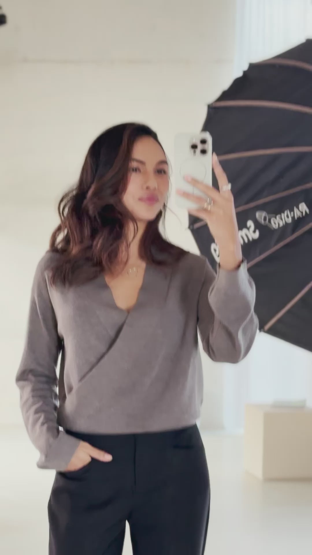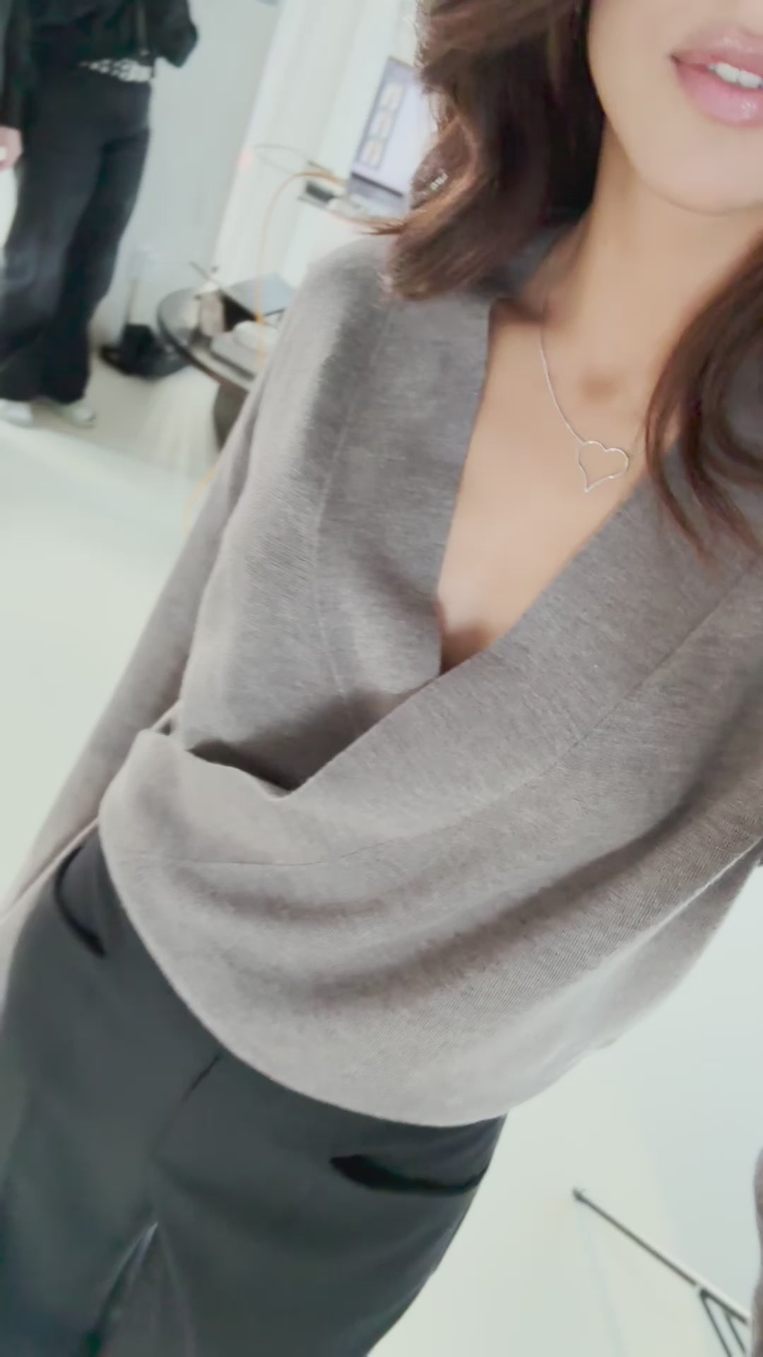 You rarely see merino wool like this- except with us ; ) Extra-fine knit in a barely visible rib, wrap sweater LES CINQ is lightness itself. The fixed wrap has a knitted trim, which prevents the edges from curling. Très élégant.