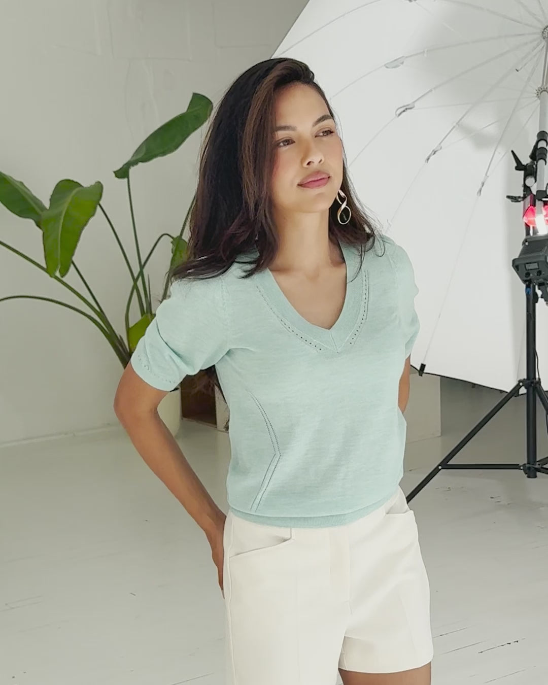 Isn't she a beauty? Knit from wonderfully fine merino wool, we have given LA DIAZ a feminine V-neck with cute ajour knit details. And, as you know: merino wool doesn't itch, so feel free to wear this classic beauty as a chic alternative to a T-shirt.